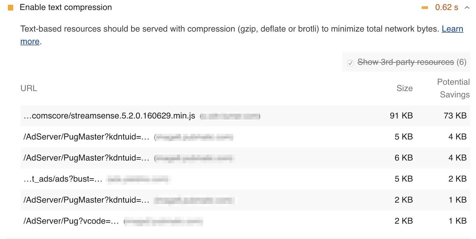 Google’s Lighthouse tool enables users to run a series of audits against web pages. The text compression audit evaluates whether a site can benefit from additional text-based compression. It does this by attempting to compress resources and evaluate whether an object’s size can be reduced by at least 10% and 1,400 bytes. Depending on the score, you may see a compression recommendation in the results, with a list of specific resources that could be compressed.