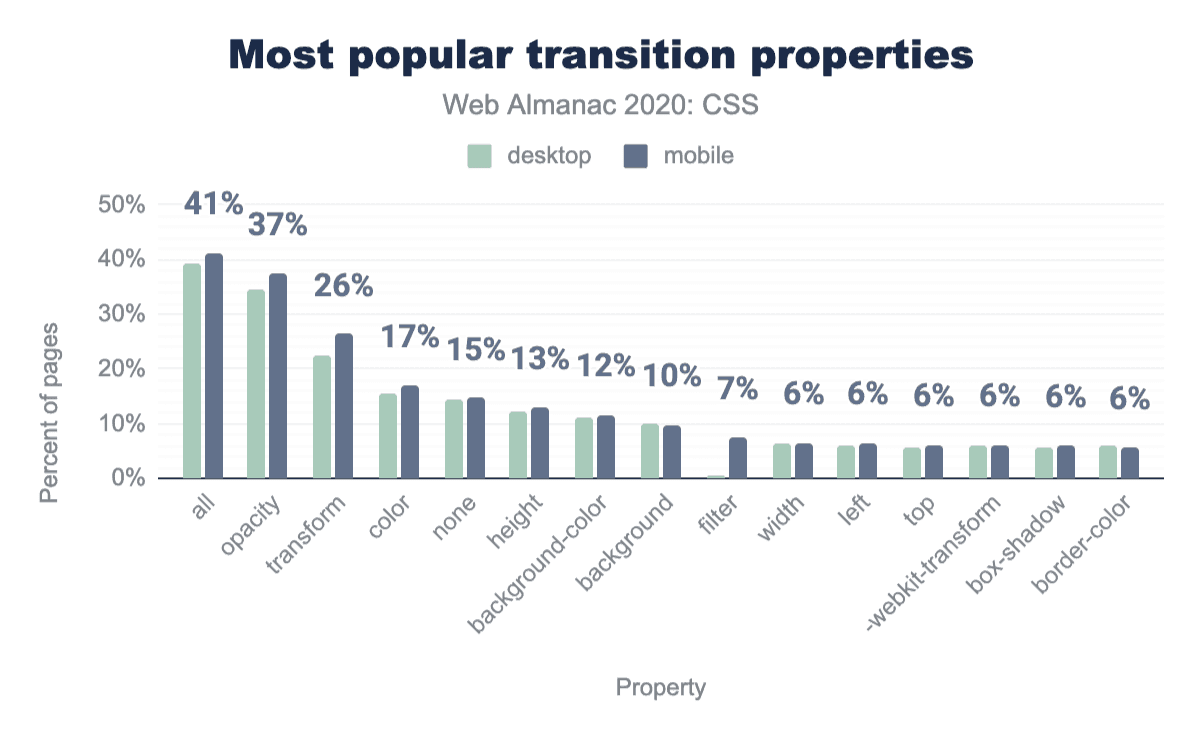 background-size at 15% for desktop and 41% for mobile, background-image at 8% and 6% respectively, margin-bottom at 6% and 4%, margin-top at 6% and 4%, border-bottom-color at 5% and 3%, font-size at 4% and 3%, border-top-color at 4% and 3%, background-color at 4% and 2%, padding-left at 3% and 2%, and finally margin-left at 3% and 2%.font