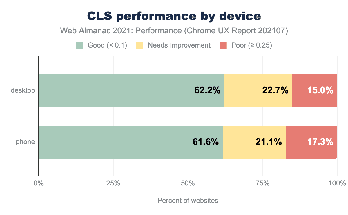 The CrUX dataset shows that 62% of mobile page loads had a CLS of 0.1 or under: