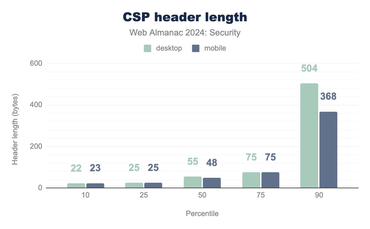 Looking back, overall CSP adoption was only at 12% of hosts in 2021, so it’s encouraging to see that growth has remained steady. If this trend continues, projections suggest that CSP adoption will surpass the 20% mark in next year’s Web Almanac.