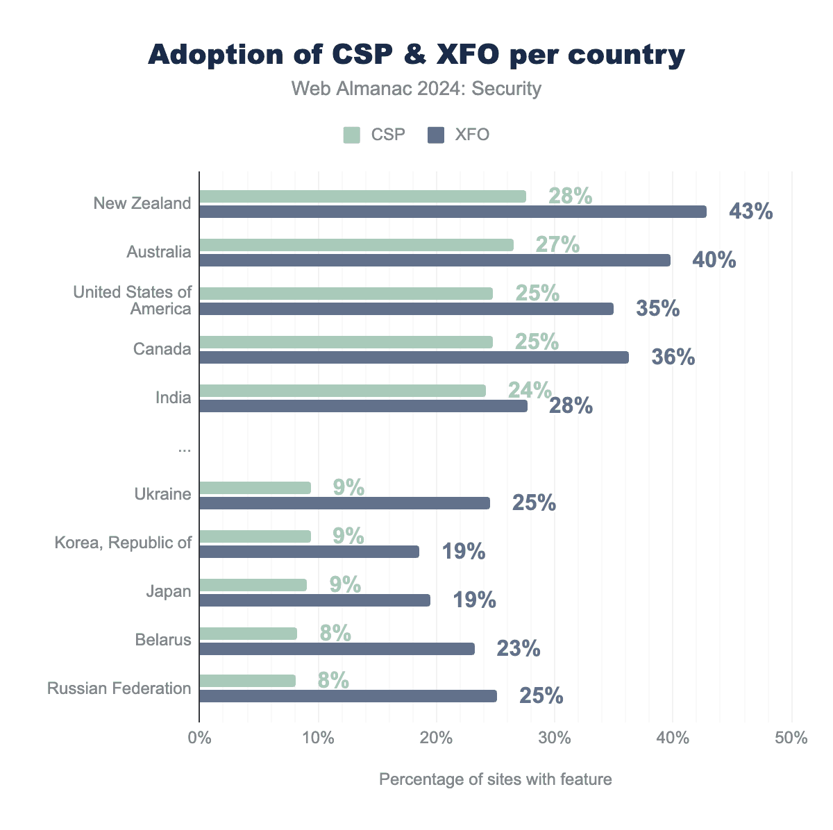 Figure 11.15. Relative increase in adoption for Content-Security-Policy header from 2022.